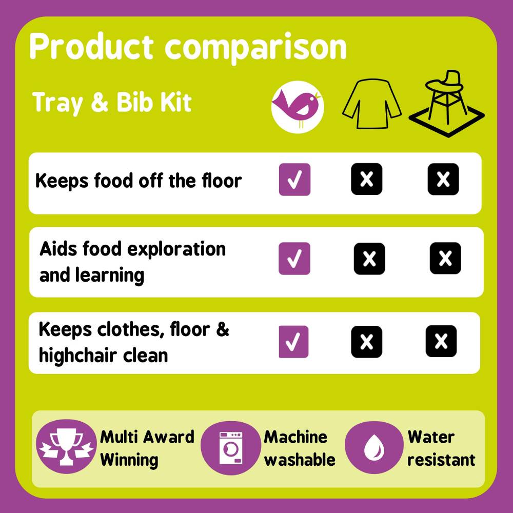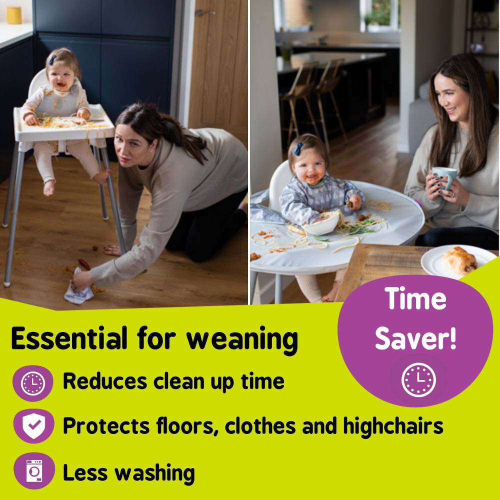 Ideell for baby-led avvenning; la babyen utvikle sine selvfôringsferdigheter samtidig som du sparer deg for all vask og rengjøring som følger med sølete måltider!