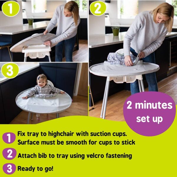 Vi anbefaler å sette opp Bib & Tray Kit først, før du setter babyen i høystolen. På den måten får du en pen, ren linje når du fester bib’en til brettet – og sultne små magene trenger ikke å vente for lenge på maten!